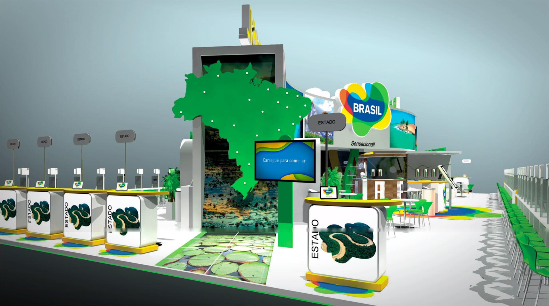 Quiz for the stand of Embratour (Brasil tourism office). Hundreds of questions about the Brasil´s 26 states. Each state have it´s own illustrated animation.
